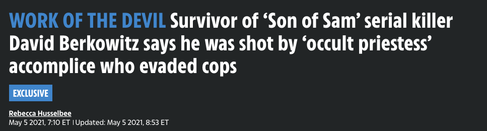 May 5, 2021 – Newsweek – Son of Sam Survivor says David Berkowitz Accomplice Shot Him and Evaded Police